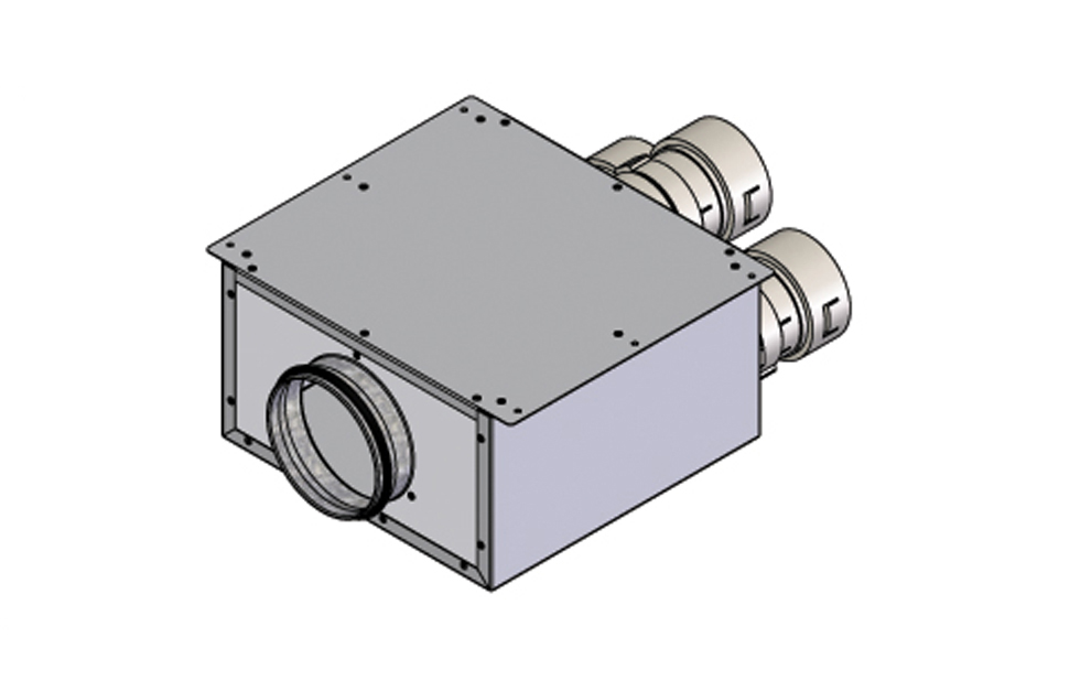 Man kan f.eks. bruge entréen som fordelingsrum ved at sænke loftshøjden der, og lave indblæsning over døren ind i det rum, hvor der skal tilføres frisk ny luft. Til den løsning kan man bruge NilAIR indblæsningsbokse for ventil over dør. Boksen kan bestilles med 2 eller 3 stutse afhængig af den ønskede luftmængde.